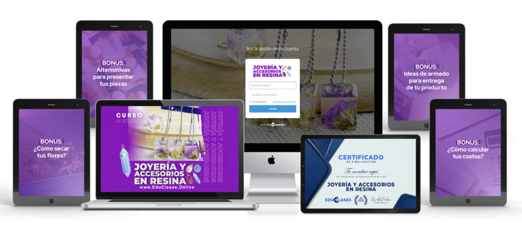 Creé este curso online para que tu también aprendas paso a paso, sin frustraciones ni miedo, a crear piezas únicas de joyería y accesorios con resina. No necesitas experiencia, solo tus ganas de crear. 💫